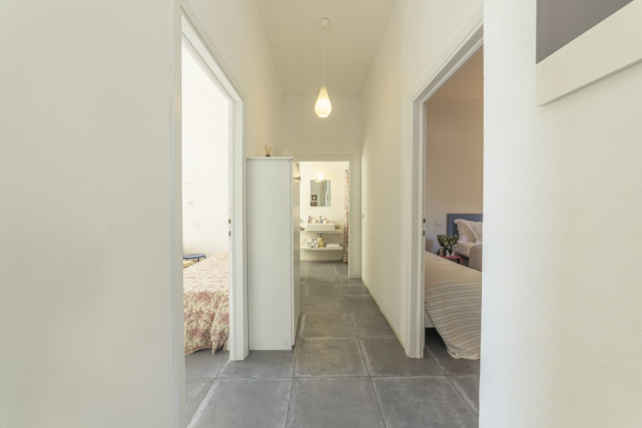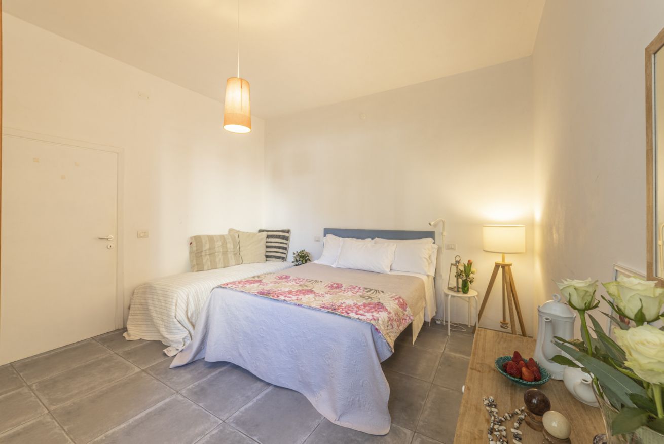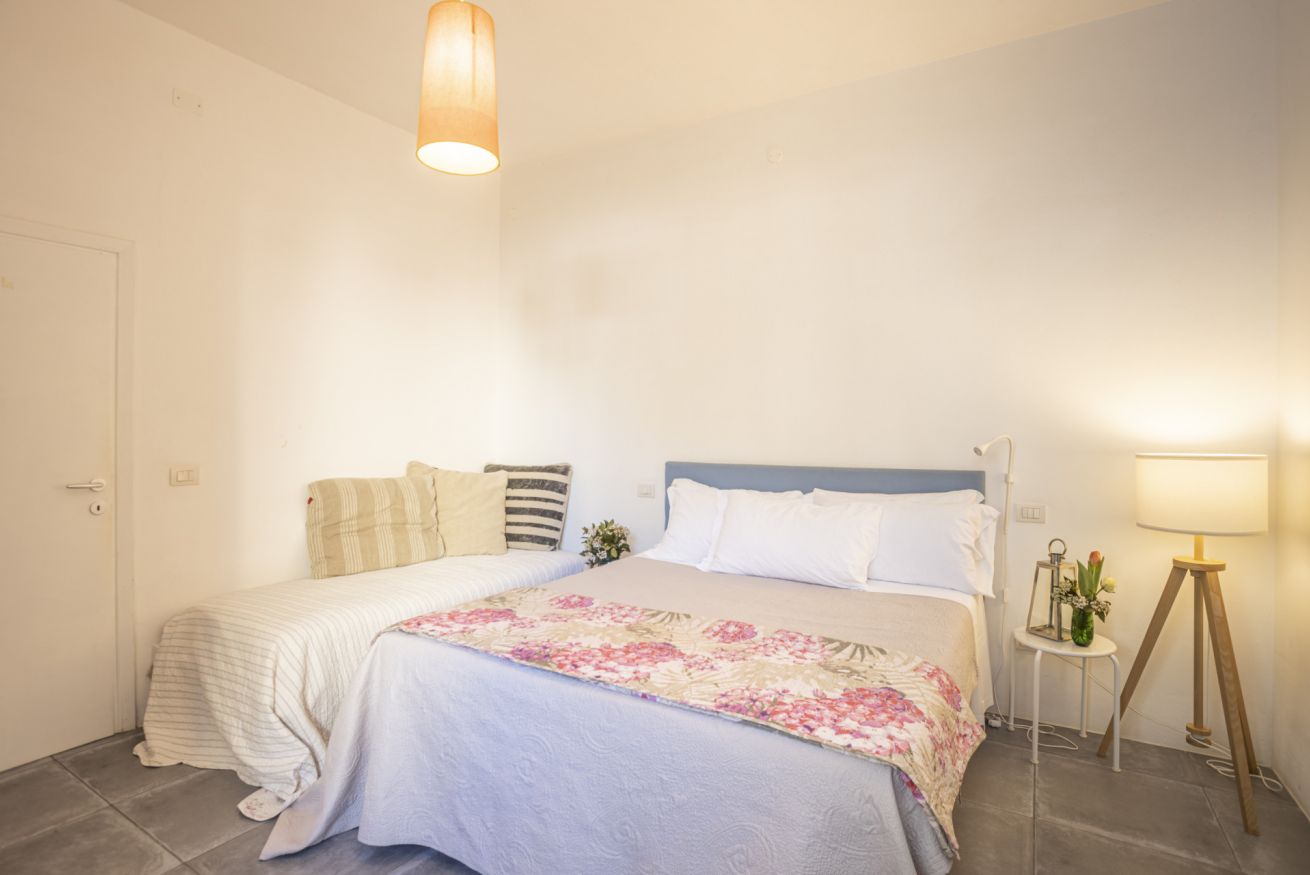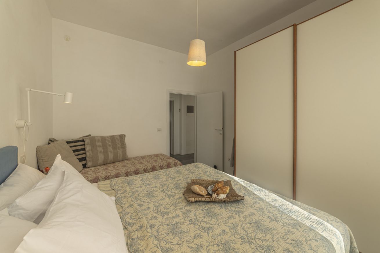 L'appartamento comprende un grando spazio giorno con cucina, due grandi camere da letto ed un bagno.
